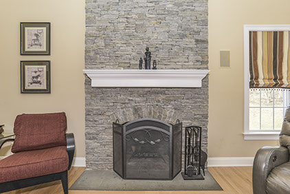 Super-efficient fireplace Treed yard with blue-stone patio Walkout lower level